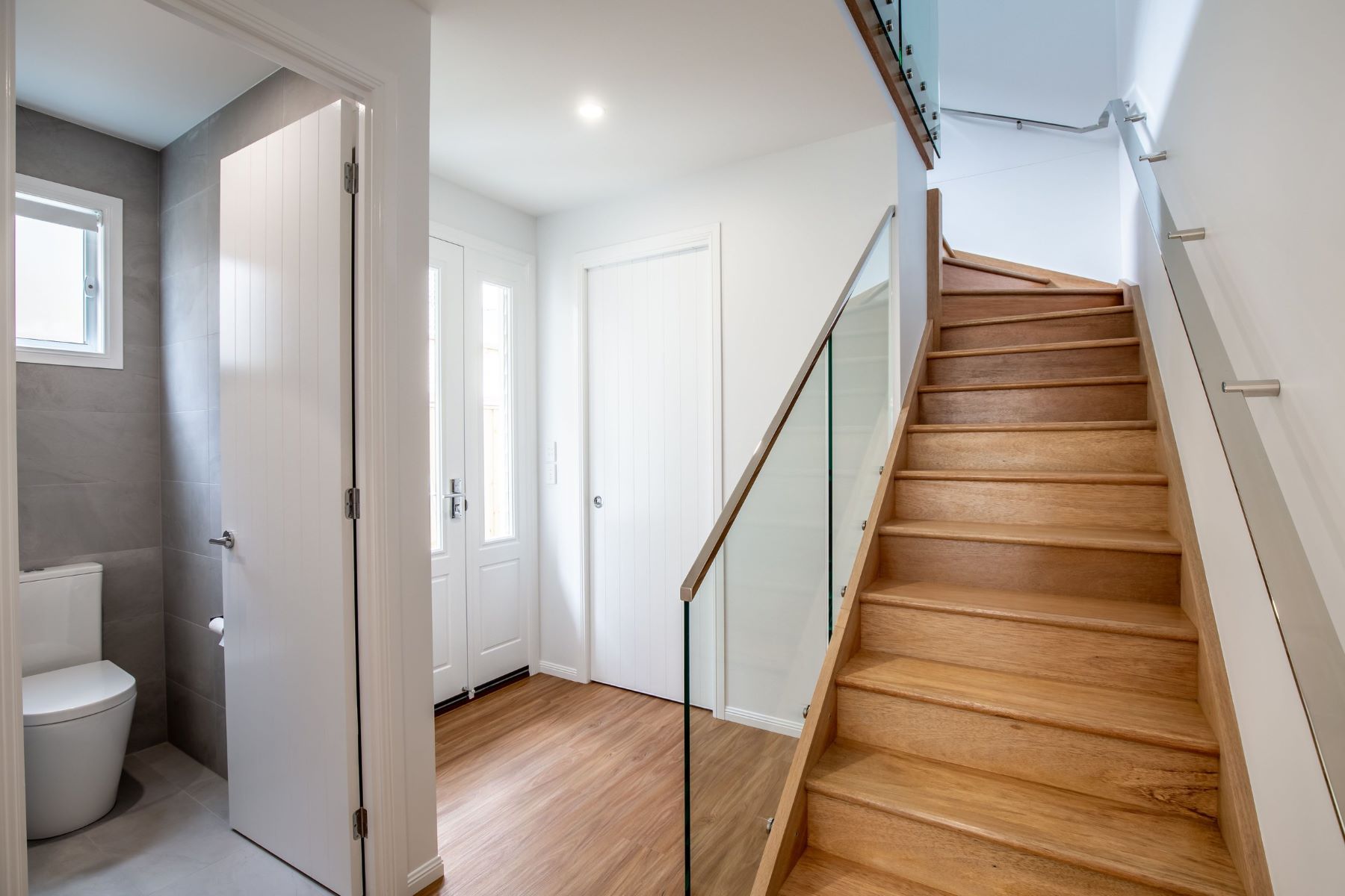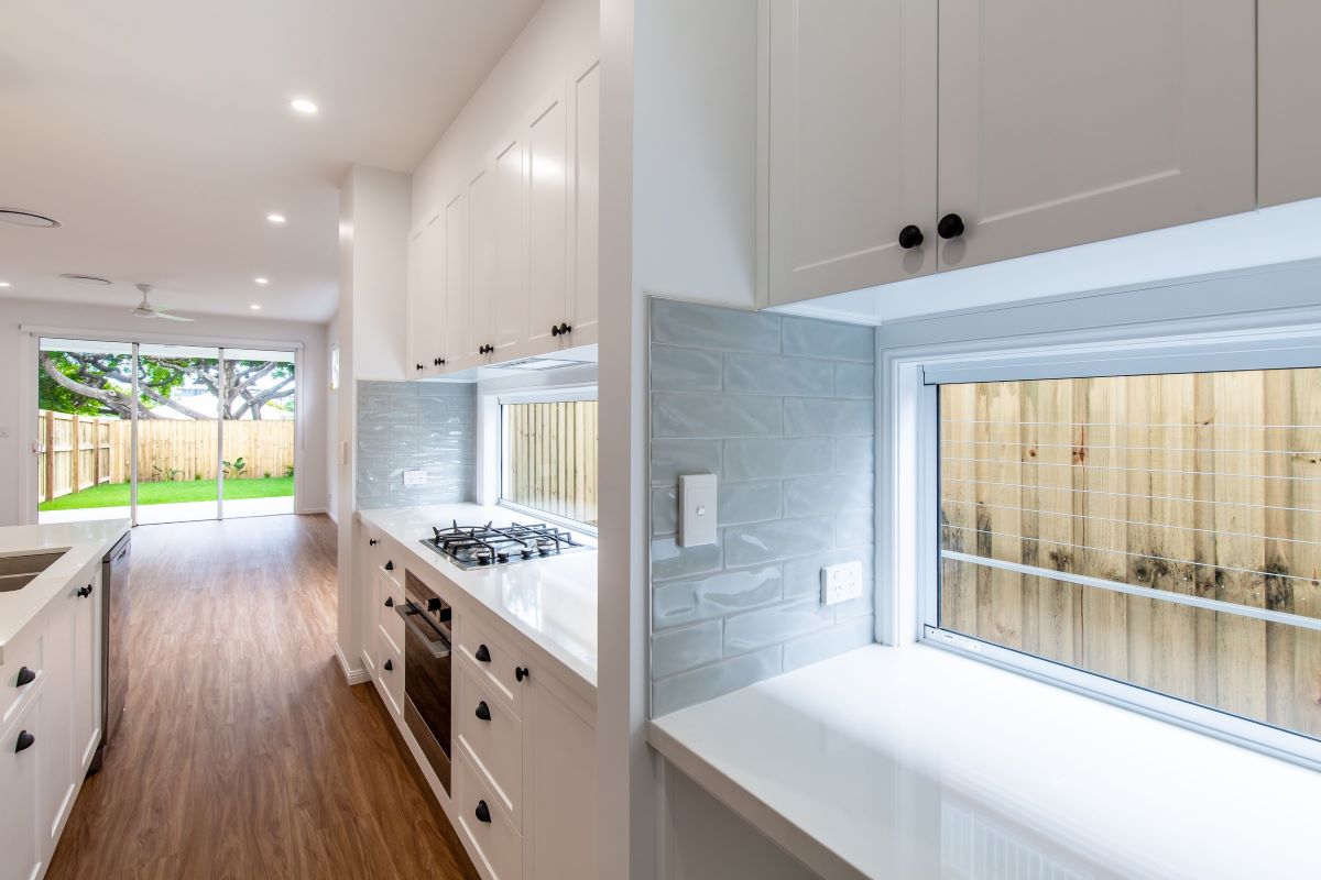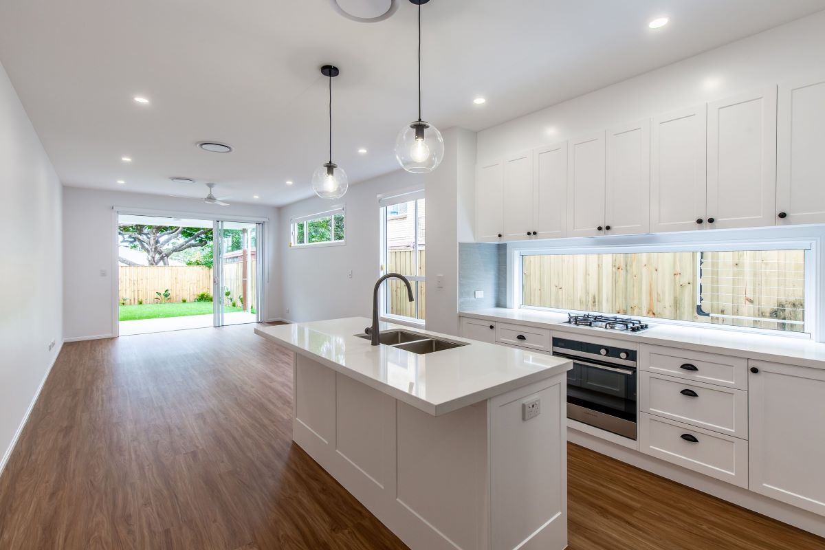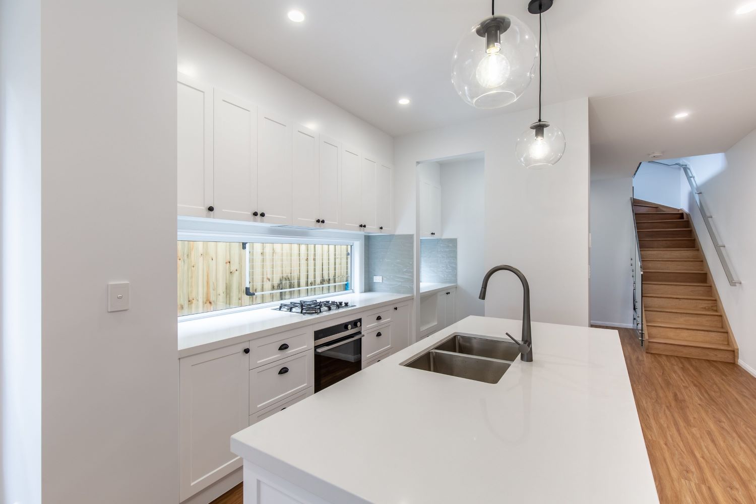 The client engaged Iconic Homes & Construction to knock down an existing house and design two Hamptons-style townhouses, each with four bedrooms and three bathrooms. The site presented a challenge, with only a 10-metre frontage available for both homes.