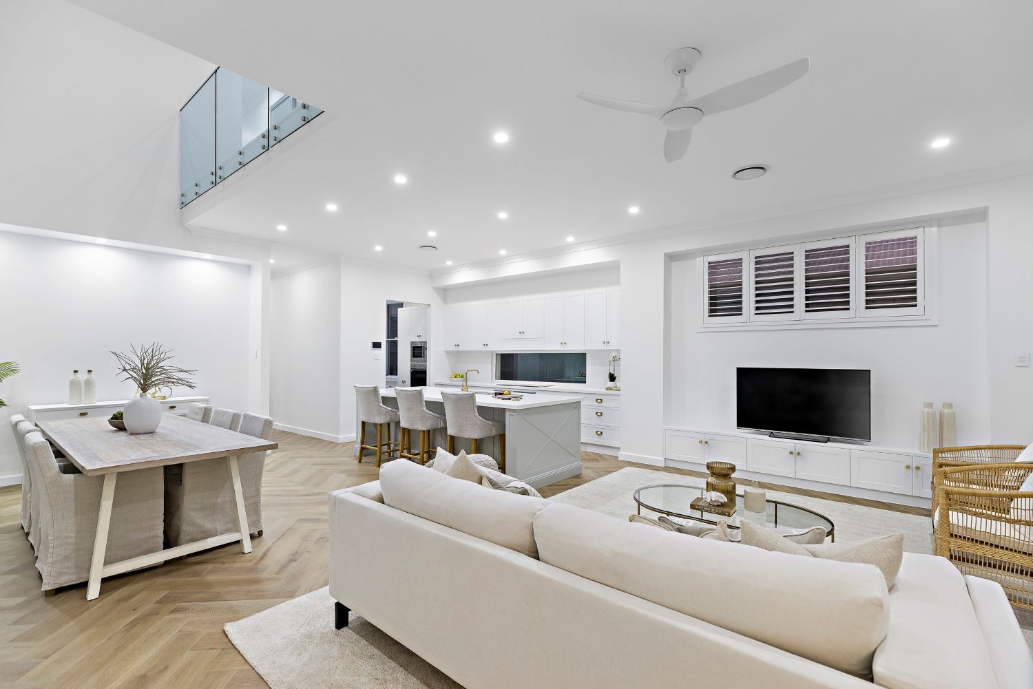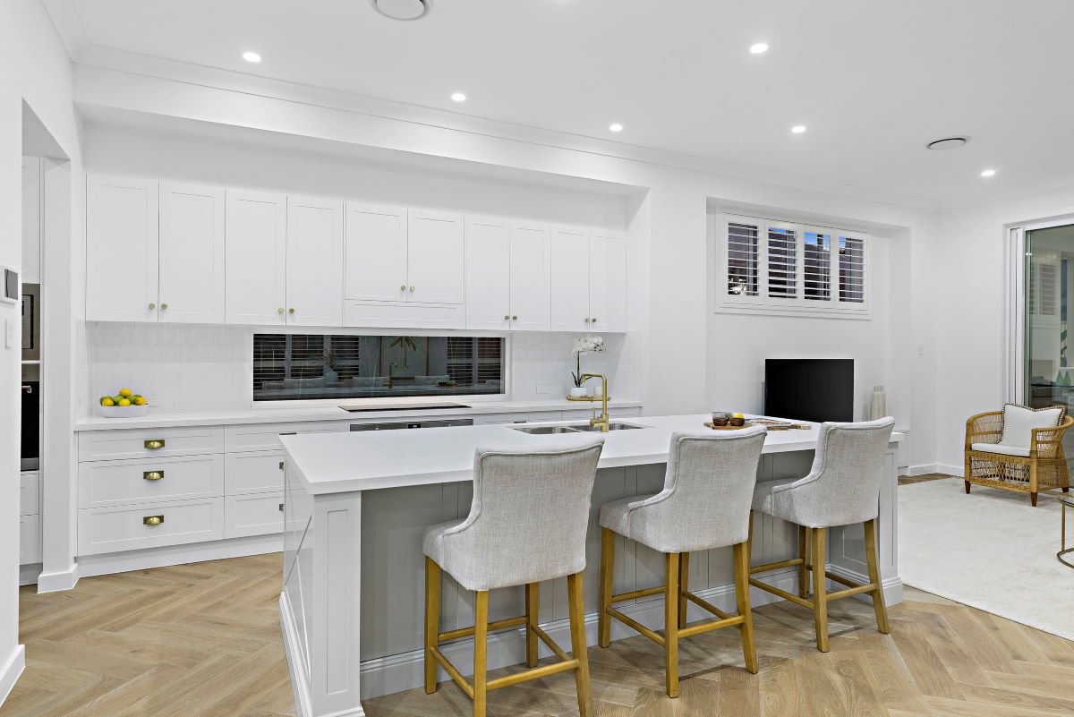 The client engaged Iconic Homes & Construction to build a two-storey, 415 square metre coastal-style home. The design needed to include four bedrooms and four bathrooms, with large voids positioned over the stairs and meals area to create visual impact and bring in natural light. Skylights were used throughout to enhance brightness, particularly over the dining area. The ground floor was to have 3 metre high ceilings, with 2.7 metre ceilings upstairs to maintain a spacious feel. Additional spaces included a media room, walk-in pantry, and a full outdoor living area complete with kitchen and swimming pool.